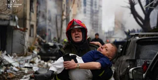 На фотографиях можно увидеть кадры спасения людей в Киеве. Пресс-служба ГСЧС показала, как из дома выносят украинца и как тушат пожар.