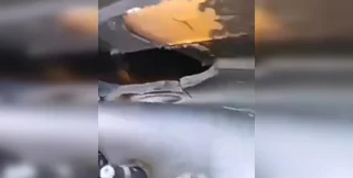 Заметно, что толщина пробитого слоя металла — почти 1 см. Автор записи удивляется силе взрыва, который мог такое сделать. Также указывает на некоторые особенности диверсии: по его словам, заряд положили в небольшое углубление между цистернами и железнодорожными платформами, на которых их перевозят.