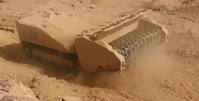 Система разминирования MV-10 обезвреживает противопехотные и противотанковые мины, а также другие неразорвавшиеся боеприпасы и подходит для обработки больших территорий.