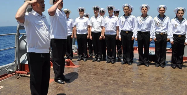 В сети можно отыскать архивные фото экипажа БДК, сделанные в 2012 году. На кадрах, опубликованных на портале Минобороны РФ — российские моряки во время торжественного построения в честь Чесменской битвы (состоялась в 1770 году во время русско-турецкой войны).