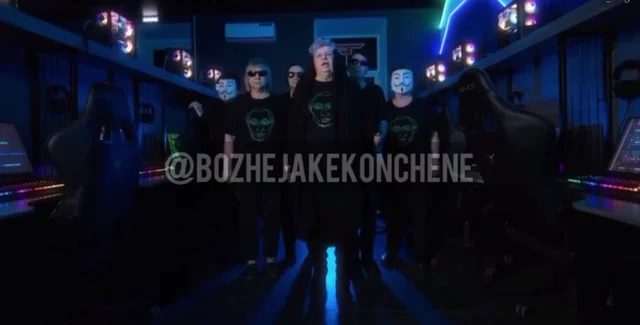В кадре бабушки в костюмах хахеров выстроились перед камерой и принялись угрожать миру.