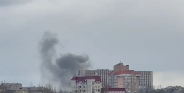 Дым начал подниматься в небо в районе здания так называемого "правительства "ДНР", где раньше была областная государственная администрация.