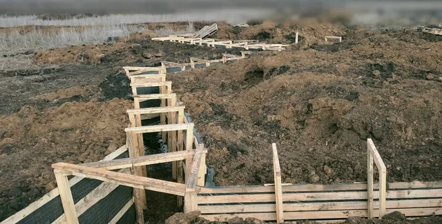 На странице Facebook инженерных войск опубликовали ряд фотографий, на которых показали ход строительства. На фотографиях можно увидеть экскаваторы, которые роют широкие и длинные траншеи где-то в поле.