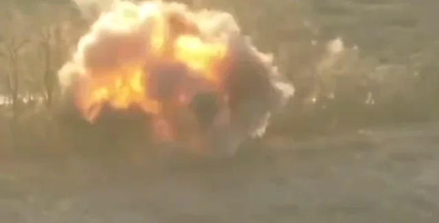 Можно увидеть, как небольшое устройство заезжает в лесополосу, после чего там происходит мощный взрыв. Применить беспилотник могли по позициям российских оккупантов на восточном направлении. Украинский наземный дрон-камикадзе, как указано в сообщении, оснащен противотанковыми минами ТМ-62.