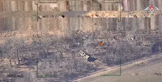 Через мгновение по установке прилетает снаряд — вспыхивает взрыв. Какое именно оружие использовали ВС РФ в Минобороны не уточнили.