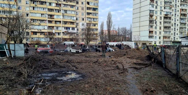 В КГВА обнародовали фотографии последствий российской атаки по Киеву. На опубликованных кадрах видно огромную воронку посреди улицы в Шевченковском районе. Вокруг разбитые деревья и здания.