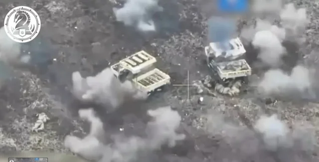 Самоубийственная атака двух российских штурмовых групп на китайских гольфкарах закончилась прямым попаданием кассетного снаряда украинских артиллеристов.