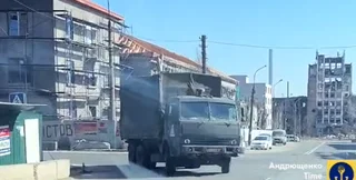 Советник мэра Мариуполя обнародовал видео, как по улицам Мариуполя едут военные грузовики.