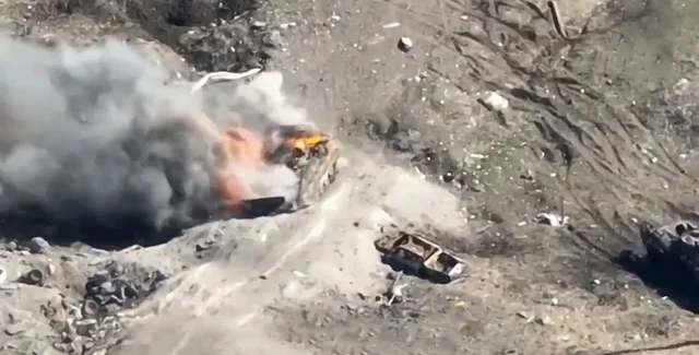 На видео, снятое беспилотником ВСУ, можно увидеть руины местности, где произошел бой. Некоторые российские танки еще дымят. Некоторые — получили существенные повреждения и не двигаются.