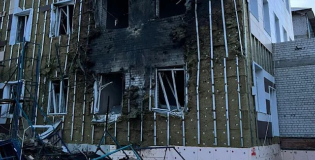 Российские журналисты утверждают, что пуск дрона-камикадзе якобы осуществлялся с территории Сумской области. Системы РЭБ "приземлили" беспилотник, однако он попал в здание будущей больницы.