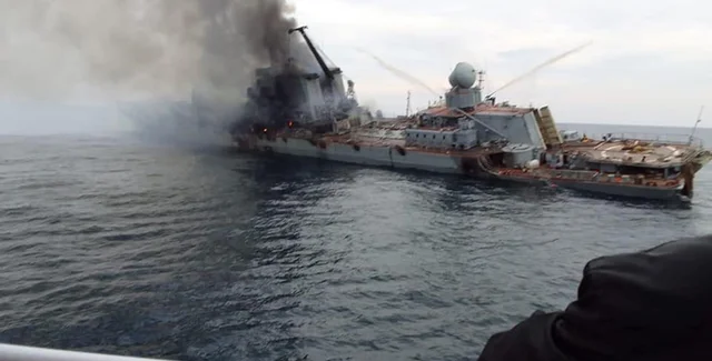 Тонущий крейсер "Москва" в 2022 году | Фото: Скриншот из видео