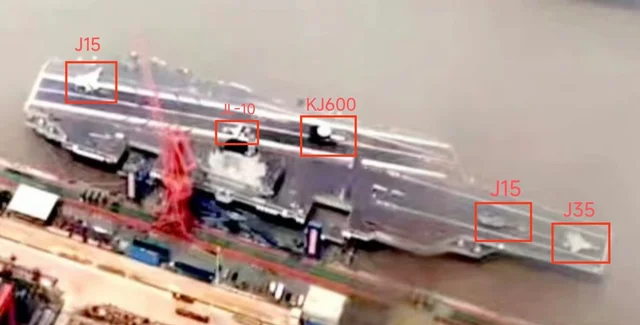 Наличие всех макетов на борту одновременно может означать, что Национально-освободительная армия Китая может лучше выявить, что нужно для маневрирования самолетов в реальных условиях. Среди самых необычных макетов является учебно-боевой самолет JL-10. Также на борту исследователи увидели два истребителя Shenyang J-15T, катапультный вариант J-15. ВМС Китая уже эксплуатируют самолеты J-15 на двух других авианосцах Liaoning и Shandong. И еще один макет был истребителем J-35, который специально разработали для запуска с помощью катапульты. Последним самолетом на борту является KJ-600 раннего предупреждения. Визуально он похож на американский самолет E-2 Hawkeye ВМС США.