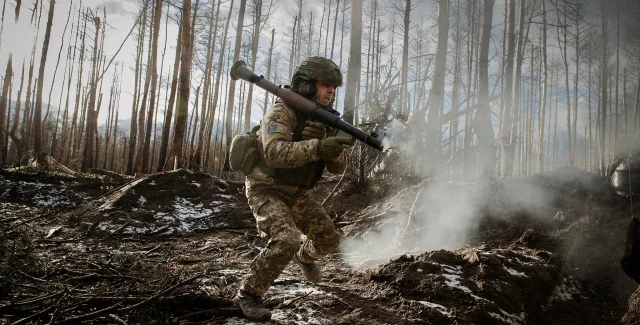 В Серебрянском лесу на востоке Украины продолжаются ожесточенные бои. Фотограф The New York Times Тайлер Хикс провел четверо суток вместе с бойцами Интернационального легиона Главного управления разведки Минобороны Украины. Репортаж опубликован 17 апреля.