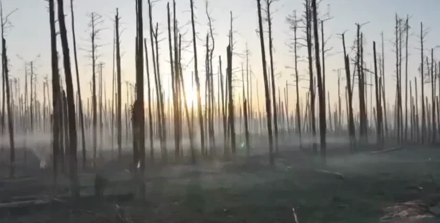 Министерство внутренних дел опубликовало видео, как сейчас выглядит Серебрянский лес, где уже длительное время идут ожесточенные бои с российскими оккупантами. В Telegram ведомства показали соответствующее видео 20 апреля.