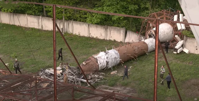 Харьковская телебашня укоротилась на 100 метров и теперь имеет высоту 140 метров. Часть, упавшая после удара ВС РФ, монтировалась вертолетами и состояла из 13 отдельных десятитонных элементов.