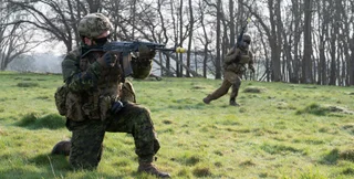 Проходят такие тренировки в несколько этапов. Один из них нужен для того, чтобы бойцы перестали бояться тяжелой бронированной техники. Им приходится сидеть в окопах в специальной позе, пока сверху проезжает танк. Журналистка говорит, что без моральной подготовки очень сложно это выдержать.