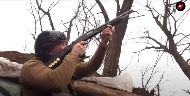 "Дробовик — это почти безотказное оружие, но его надо правильно юзать. Это должен быть пост или на позиции дежурный, который должен слушать и смотреть в воздух", пояснил военный.
