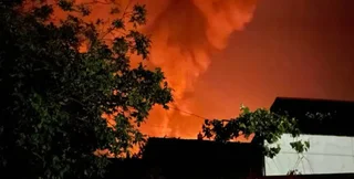 Местные жители говорят, что сначала раздался взрыв, после чего появилась вспышка в небе.