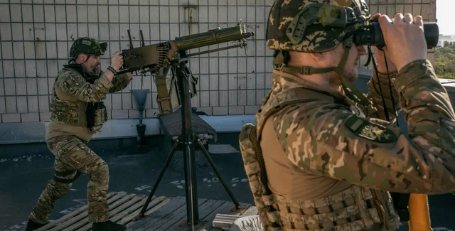 Последняя крупная ракетная атака России на Киев произошла месяц назад, сообщил Евгений Мезенцев. Его пулемет "Максим", изготовленный в 1944 году, сбил четыре дрона. Но он не сможет поражать гиперзвуковые ракеты, которые могут двигаться со скоростью 10 Маха. Большинство представителей его подразделения, известного как "Мрія" — волонтеры, работающие в юридической сфере. Несколько раз в месяц Мезенцев круглосуточно дежурит. В остальное время он работает судьей апелляционного суда.