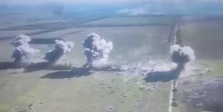 "Это видео сегодня выложили российские пропагандисты. Российский дрон корректирует удар четырьмя корректируемыми авиабомбами с вакуумной боевой частью по позиции одной из наших бригад возле села Липцы — ключевого села на подступах к Харькову", — сказал Юрий Бутусов.