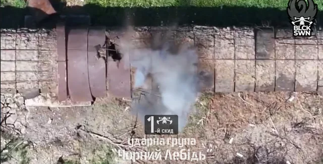 "Миномет пробивает конструкцию, а мы с высоты в 200-250 метров постоянно держим трубу под огневым контролем, метко сбрасываем сюрпризы любителям походить по лайну. Судя по перехватам, работаем успешно", — отметили в "Черном лебеде".