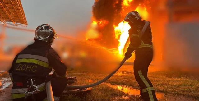 В одном из районов из-за падения обломков загорелся промышленный объект. К ликвидации последствий привлекли более 100 пожарных и 30 единиц техники. Из-за падения обломков также повреждены частный дом, АЗС, гараж. В другом районе загорелось складское помещение.