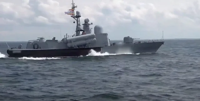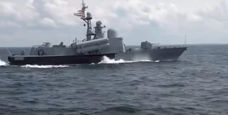 На опубликованном видео российские матросы нацеливаются на условные мишени, дальше следует отсчет перед пуском и нажатие кнопки.