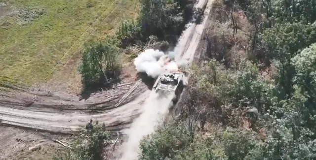 FPV поразил БМП Bradley в лобовую проекцию, однако машина даже не остановилась и продолжила движение. Дополнительного боевая машина имеет динамическую защиту BRAT (Bradley Reactive Armor Tiles). Также в публикации ссылаются на Forbes, в котором заявляют, что Bradley в версии ODS SA не используют в армии США. Поэтому тысячи машин стоят на армейском хранении.