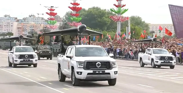 На военном параде в Минске, посвященному годовщине независимости Беларуси, заметили расчеты с ударными дронами "Герань-2" — аналогом иранских БПЛА Shahed. Видео было опубликовано на официальном сайте главы РБ Александра Лукашенко.