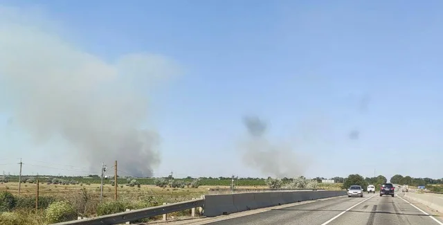 При этом украинские Telegram-каналы сообщают о том, что по меньше мере три ракеты достигли своей цели. И пишут о пожаре в трех местах, один источник возгорания у Каховского шоссе, именно эти фото появились в соцсетях.
