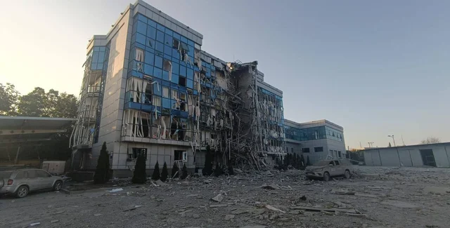 В результате ракетного удара в Харькове, как сообщил глава ХОВА, повреждено здание гуманитарного фонда, пять автомобилей и дом. В селе рядом разрушен экопарк.