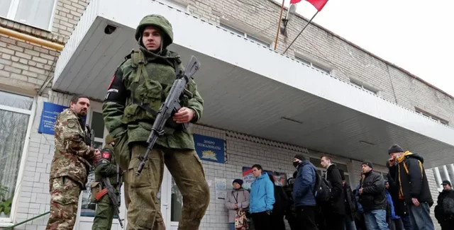Оккупационные войска возле военкомата на ВОТ (иллюстративное фото) | Фото: REUTERS