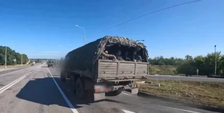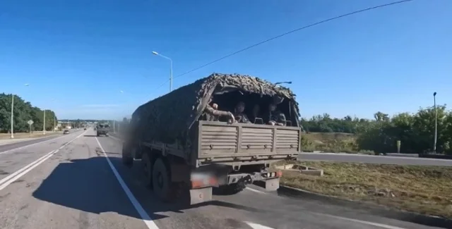Журналисты опубликовали видео с движением техники ВС РФ днем 9 августа. При этом они указывают, что видео предоставлено Минобороны РФ (в канале российского ведомства его не отыскалось). Видим, как по автотрассе перемещается колонна, в состав которой входят минимум три грузовика с солдатами. Камера в руках оператора несколько раз проезжает мимо колонны туда и обратно и показывает все детали сил, которые россияне срочно перебрасывают в место прорыва в Курской области. В какой-то момент в кадр также попадает установка РСЗО.