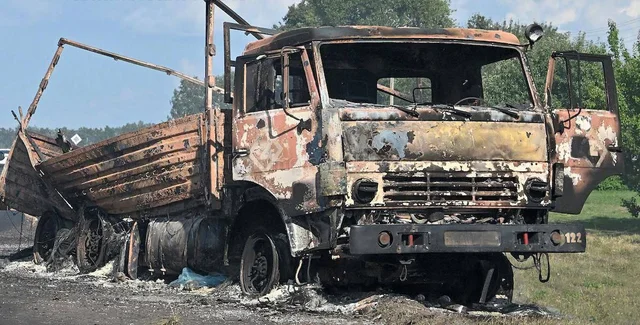 "В Курской области разобранная украинскими ракетами военная колонна до сих пор стоит там, где по ней прилетело", — отметил Цаплиенко в описании к опубликованным фотографиям уничтоженной техники.
