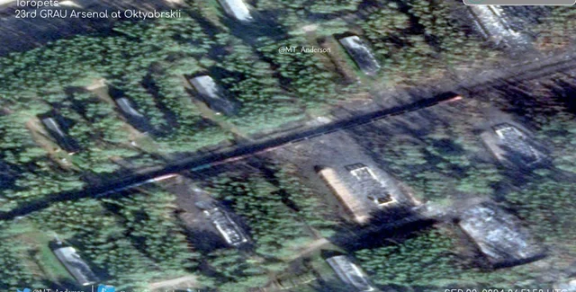 Появились новые спутниковые фото 23-го арсенала Главного ракетно-артиллерийского управления (ГРАУ) Минобороны РФ, расположенного в районе поселка Октябрьский в Тверской области. Их опубликовал в соцсети X (ранее — Twitter) американский OSINT-исследователь MT_Anderson 22 сентября.
