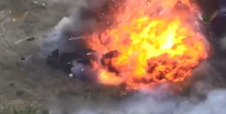 Бойцам 109 батальона 10 бригады "Эдельвейс" ВСУ понадобилось два FPV-дрона для уничтожения российской бронемашины, обшитой листами металла. Сначала они задымились, а потом взорвались, и куски кабины разлетелись по полю.