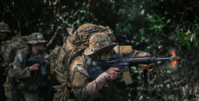Чтобы проверить способность армии быстро развертываться и вести боевые действия на островах Тихого океана, солдаты 25-й пехотной дивизии вместе с японскими, австралийскими, индонезийскими и другими войсками союзников спускались по веревкам в ущелья в джунглях, а затем совершали подъемы по горам, нагруженные снаряжением.