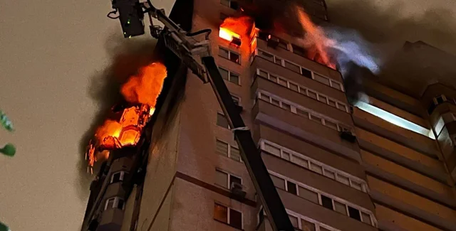 Из-за атаки шахедов в Подольском районе Киева возник пожар, который пытаются потушить. Взрывы в результате работы ПВО слышали в столице и области.