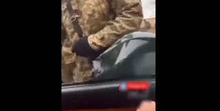 "Мы граждане Украины. Вы сейчас нарушаете права и влазите в нашу машину. Мы сейчас вызовем полицию", — сказала женщина, при этом сотрудников правоохранительных органов, вероятно, с военными не было.