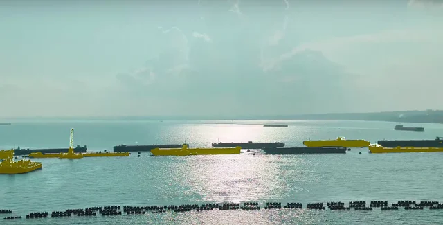 Еще 8 ноября 2024 года на спутниковых снимках по обе стороны судоходного канала в Керченском проливе было зафиксировано 34 плавсредства в два ряда. Их россияне скрепили между собой.
