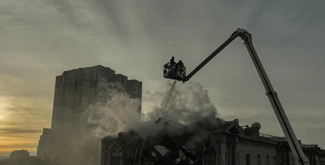 "Продолжаются работы по ликвидации утренней вражеской атаки в Печерском районе города. Произошло частичное разрушение в пределах 4-6 этажей шестиэтажного жилого дома и пожары в пределах 4 и 5 этажей. Пожары ликвидированы на общей площади 70 кв. м. В ходе тушения были спасены два человека, а во время разбора завалов обнаружены тела двух погибших. Четыре человека получили травмы", — рассказали в пресс-службе ГСЧС Киева.