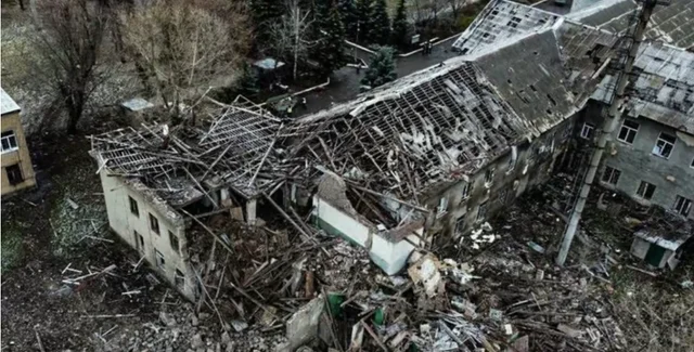 ВСУ пытаются нарушить российское военное управление, чтобы замедлить наступательные усилия. Недавний удар снял украинский беспилотник сверху. Боеприпас глубокого поражения — ракета, бомба или крылатая ракета, судя по всему — поразила заброшенную высотку в Новогродовке, которую российская 2-я гвардейская общевойсковая армия превратила в импровизированный штаб.