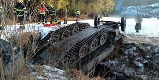 Трагедия произошла во время демонстрации исторической военной техники. Раритетная бронемашина двигалась по сильно обледенелом мосту и, потеряв сцепление с дорогой, рухнула в кювет.