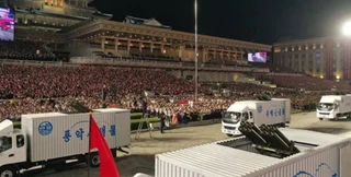 Сначала армия КНДР продемонстрировала различные гражданские грузовики и самосвалы со спрятанными в них реактивными системами залпового огня в рамках военного парада, который состоялся в 2023 году в Пхеньяне.
