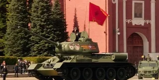 На самом видео видно, что колонна российских танков с красными флагами пытается двигаться по заснеженному полю, однако под ними подрываются мины, сверху по танкам прилетают дроны, а также другая артиллерия.