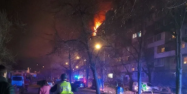 Известно, что взрывы раздавались в разных районах Киева и области. В одном из районов столицы дроны ударили по многоэтажке — горит квартира.