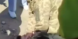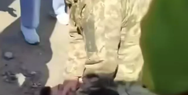 На видео видно, как мужчина лежит на дороге. На нем сверху сидит человек в военной форме и закрывает тому рот руками. Рядом с ними находятся возмущенные люди, которые снимают инцидент на камеру.