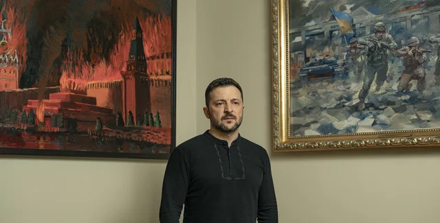 Кремль в огне и украинские воины: что известно о картинах в кабинете Зеленского (фото)