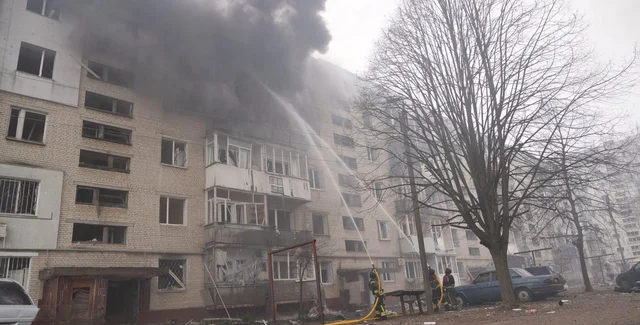 На странице Facebook ГСЧС Сумской области заявили о пожаре в пятиэтажке и в частном доме. После российского обстрела Сум спасатели пытаются потушить огонь в нескольких локациях, говорится в сообщении. Также указано, что из школы эвакуировали 56 человек, в том числе — школьников.