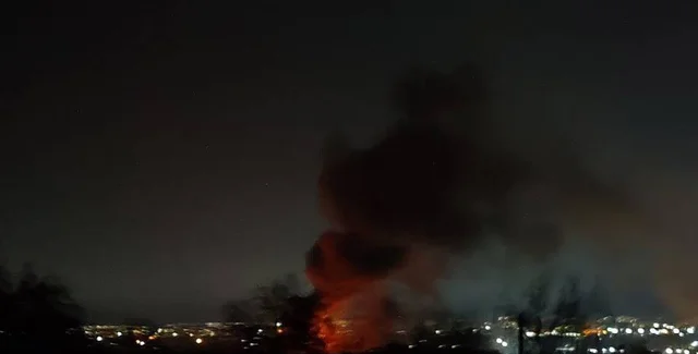 На месте попадания загорелся пожар. Как отметили россияне, он вспыхнул в местной промышленной зоне из-за "падения обломков сбитых беспилотников".